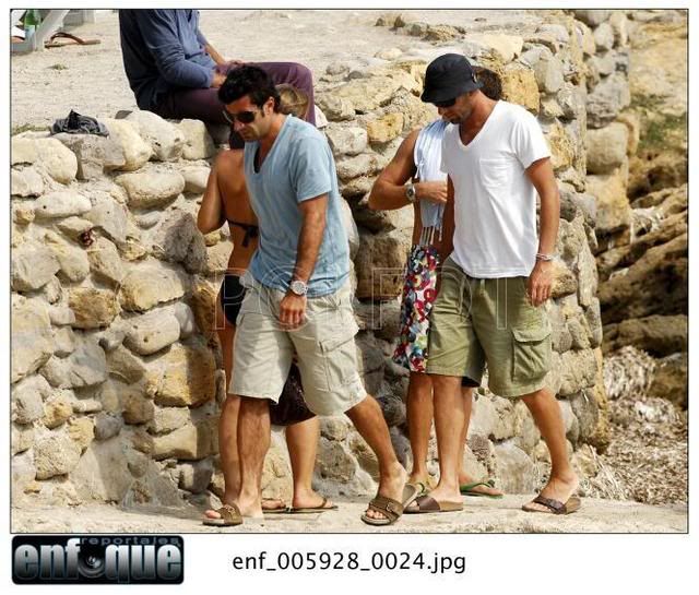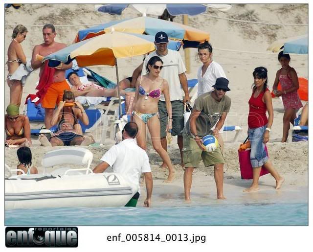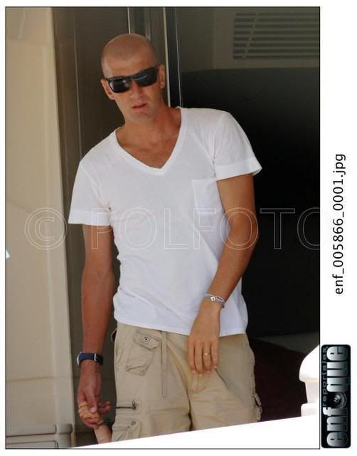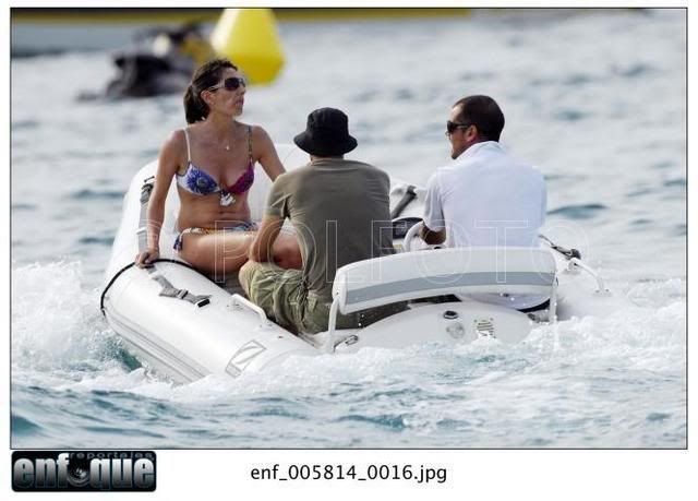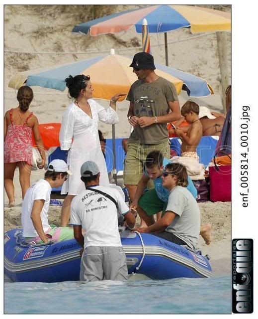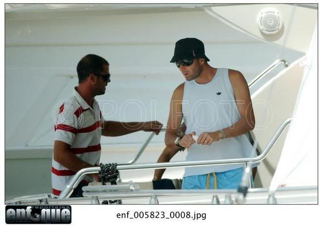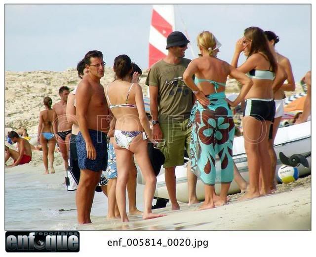| На Балеарские острова подвалил Луиш Фигу. Хорошо им там! - море, солнце, всякое там dolce far niete. А у нас в Москве жара страшная, тянет гарью с торфянников и до отпуска целая неделя. Поэтому смешные подписи не придумываются, уф. Ну вот, короче, встреча на Эльбе. Впечатление такое, что Луиш и Вероник друг другу звонят. Вот они идут туда Сначала леди А потом джентльмены А этого джентльмена мы рассмотрим повнимательней А потом они идут обратно Такое впечатление, что папарацци надоело это хождение туда-сюда и они эту чудную парочку окликнули. И сказали: вам-то хорошо, а мы тут на работе. Ну сделайте чего-нибудь приятного трудовому народу! И Зизу с Вероник сделали